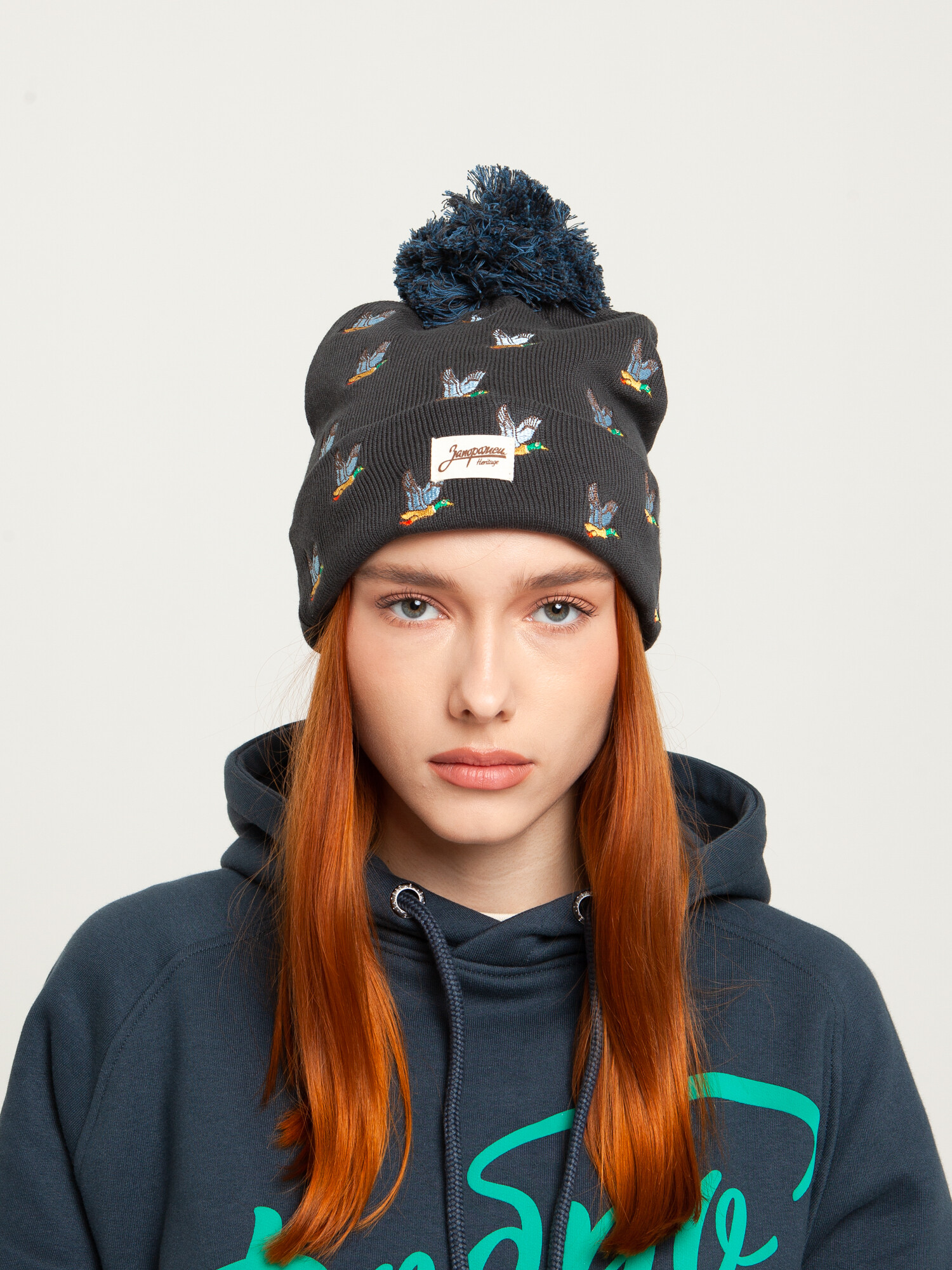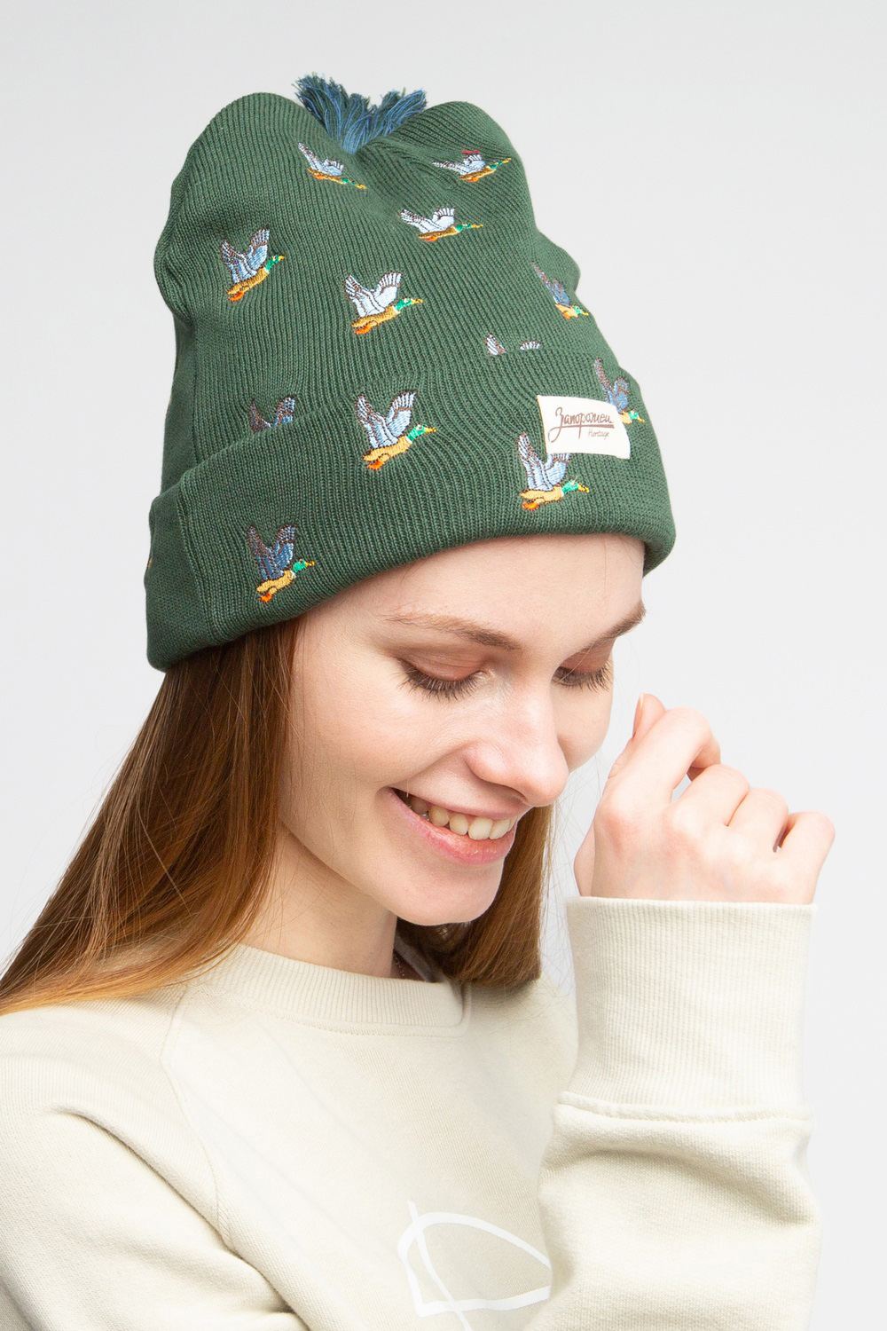Трикотажная вязаная шапка с помпоном от российского уличного бренда ЗАПОРОЖЕЦ отлично подходит для повседневной носки с октября по апрель.