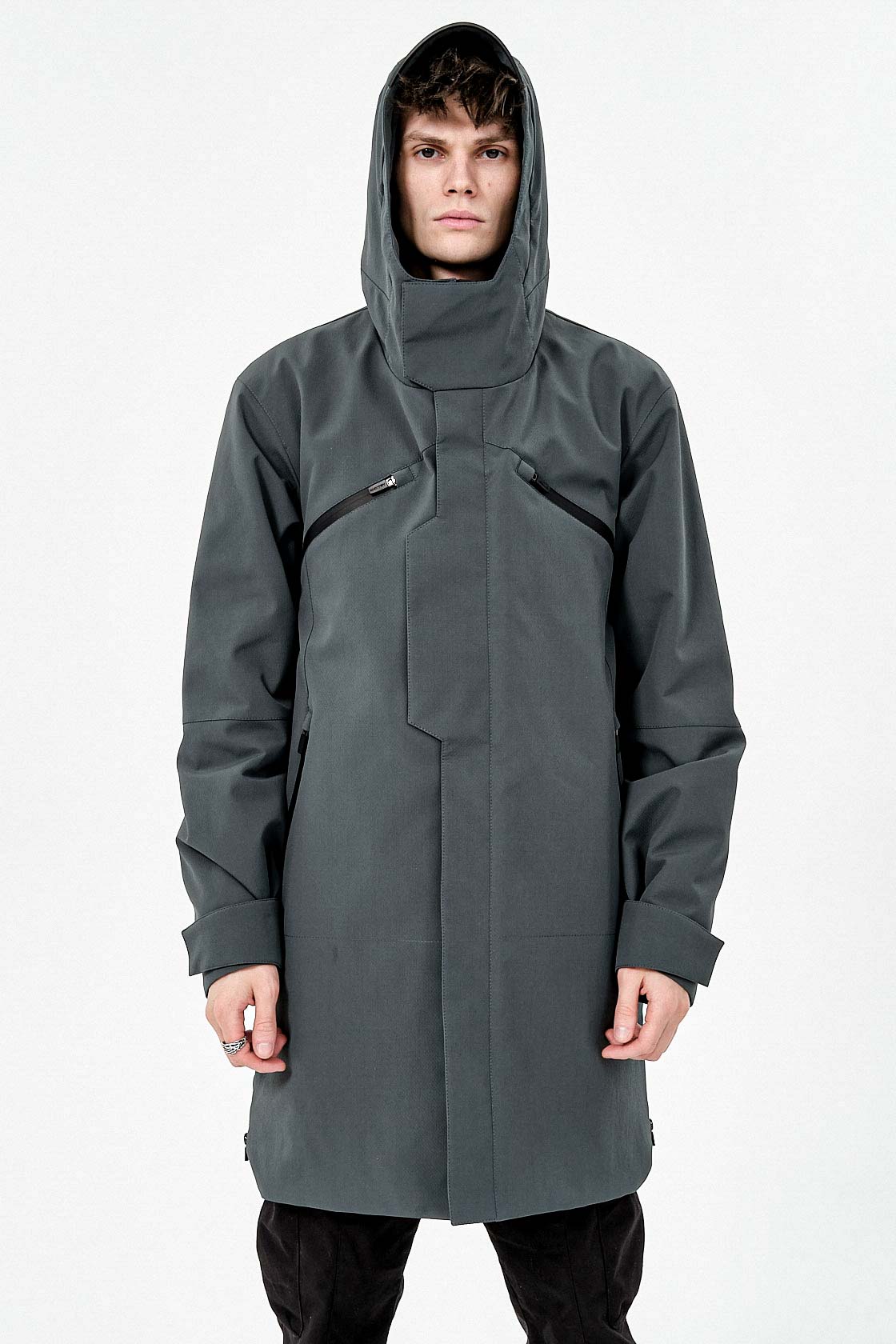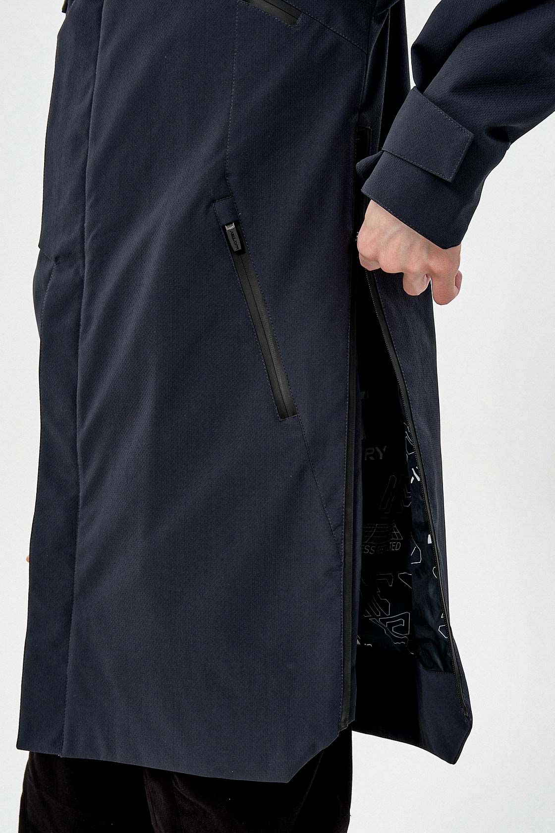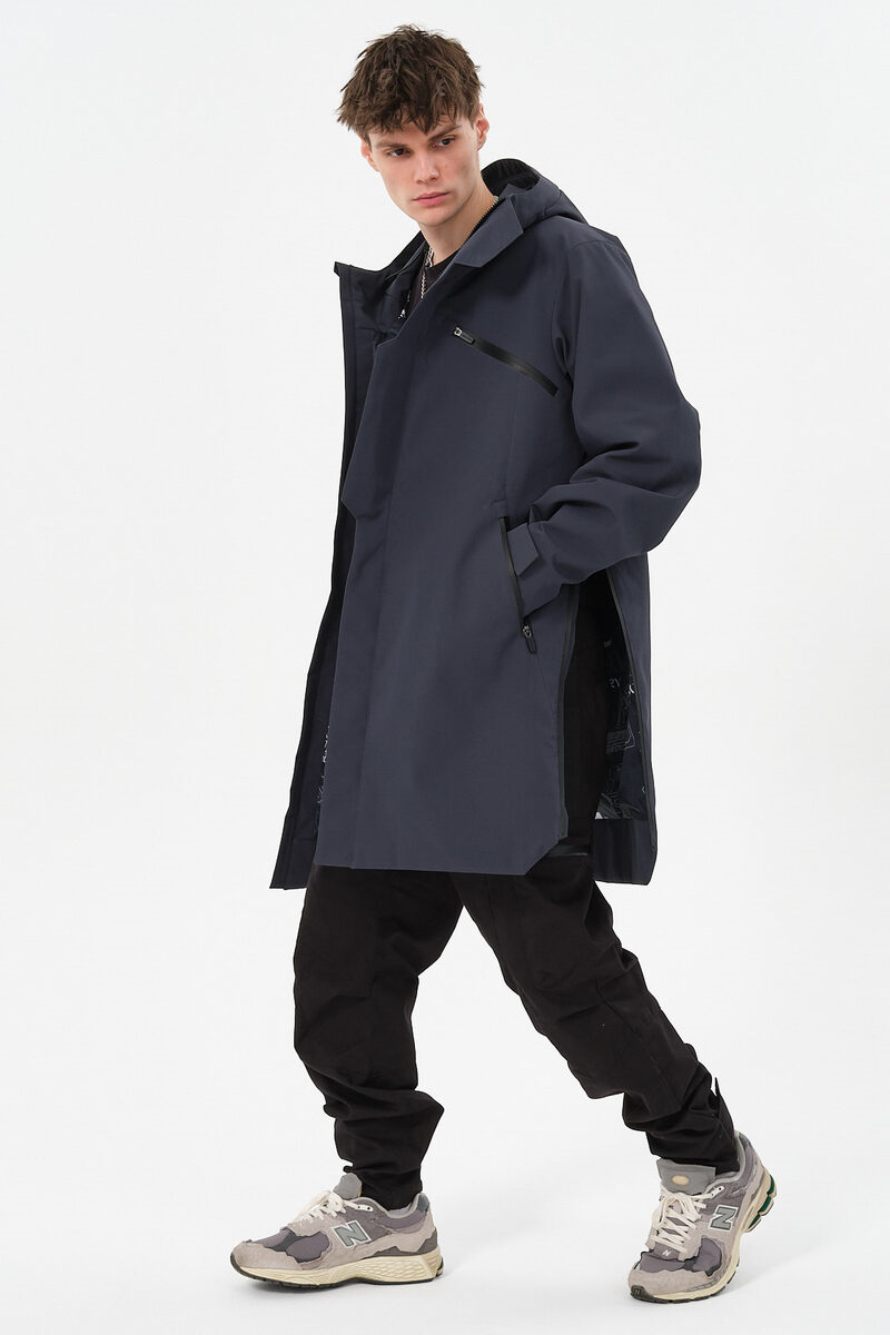 ___Плащ выполнен из плотного текстурированного полиэстера с мембранным покрытием