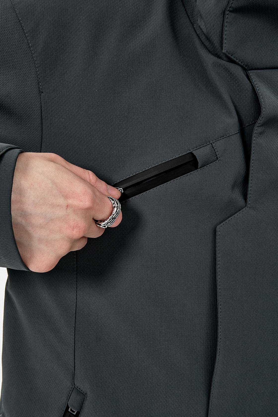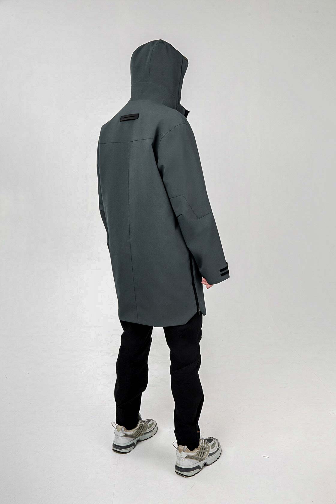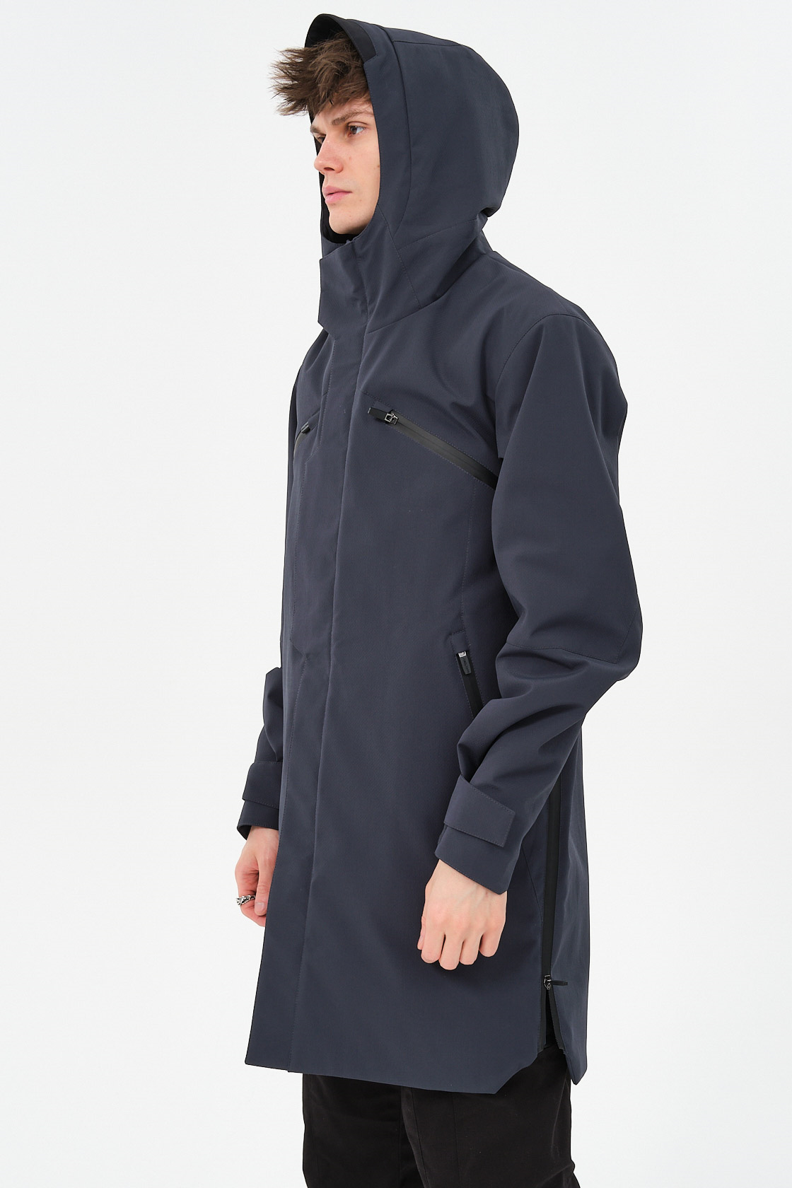 ___Плащ выполнен из плотного текстурированного полиэстера с мембранным покрытием