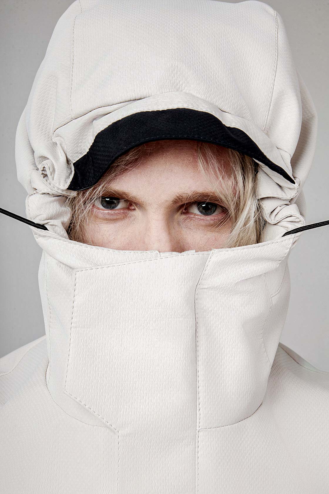 ___ Капюшон имеет регулировку по лицевому срезу и глубине эластичными шнурами со стопорами, спрятанными внутрь конструкции капюшона.