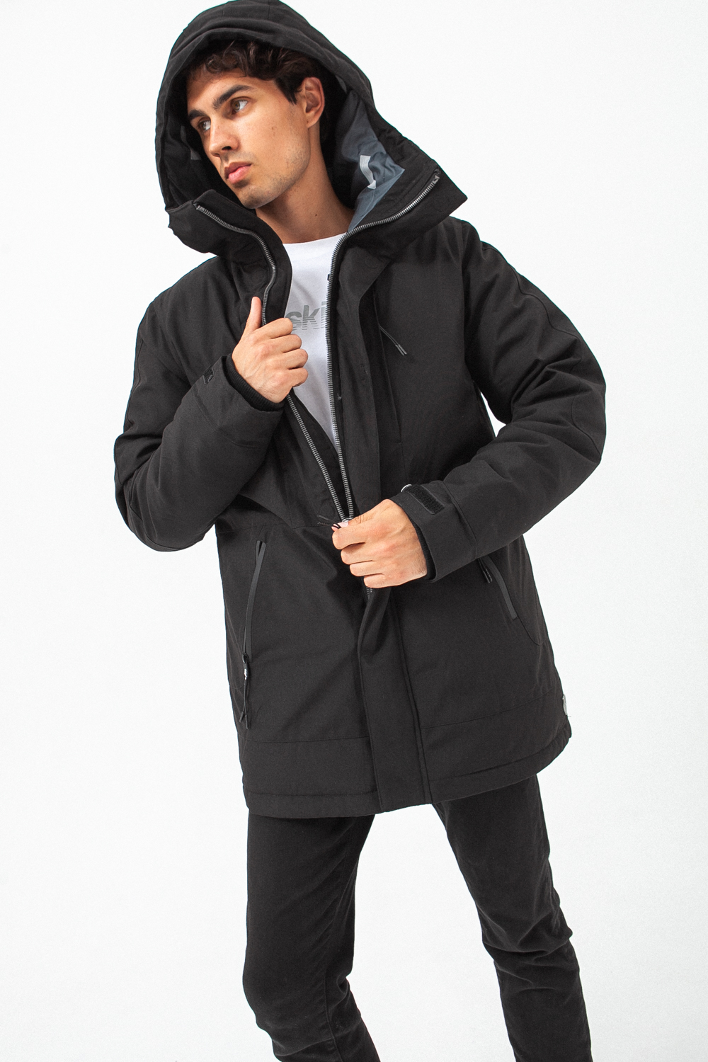 Skills Ultra: зимняя куртка средней длины с высоким горлом и капюшоном.