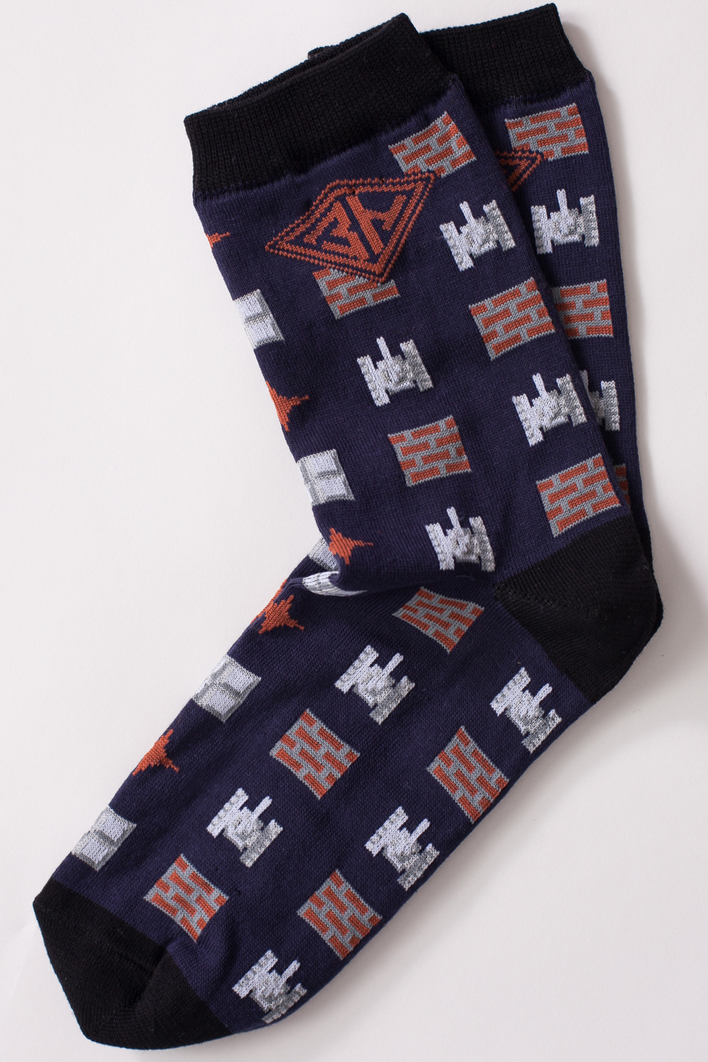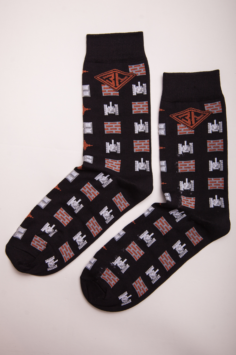 Носки российского бренда Запорожец, выполненные из приятной ткани на основе хлопка, с небольшим добавлением эластана. Традиционная форма, укрепленный носок и пятка, эластичные манжеты в верхней части. Носки представлены в интересной расцветке, украшенной изображениями танчиков из знаменитой игры на денди.