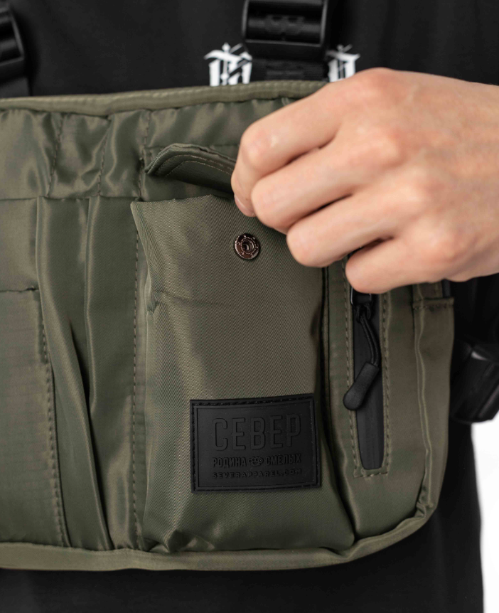 Нагрудная сумка унисекс, по виду напоминающая бронежилет, на сегодняшний день - трендовый аксессуар. Одно из её главных отличий - удобство. Она всегда на груди, руки свободны, и ты можешь без труда достать что-нибудь из нее. Сумка имеет 1 отделение на молнии, 3 кармана на передней части, и один скрытый внутренний - для самых необходимых вещей. Ты не будешь озабочен их сохранностью, ведь сумка всегда у тебя перед глазами! Изделие укомплектовано широкими ремнями-лямками, которые соединяются за спиной, они - с пластиковыми защелками, позволяющими быстро снять сумку. Каждую лямку можно регулировать по нужному размеру, поэтому сумка удобно и плотно прилегает к телу. Изделие выполнено из прочного высококачественного полиэстера, обладающего водоотталкивающими свойствами и устойчивостью к механическим повреждениям. Нагрудная сумка-жилет «Север» сочетает в себе комфорт и универсальность. Фурнитура YKK, фирменная подкладочная ткань, брендированный плечевой ремень и нашивка «Север». Размер: 29х21х4 см.