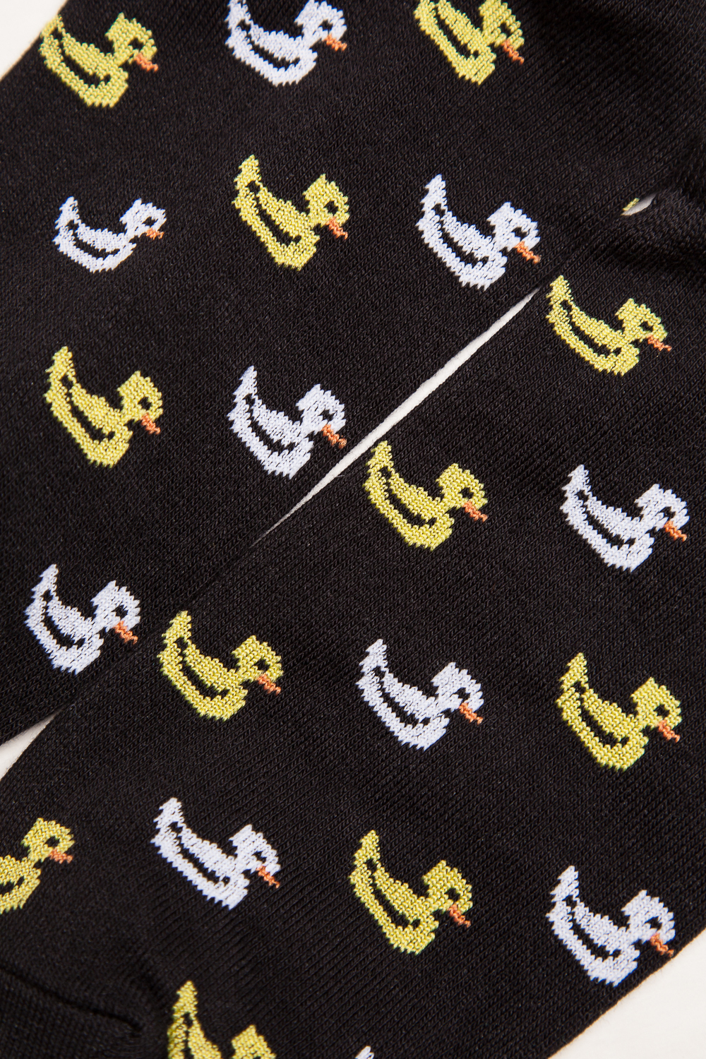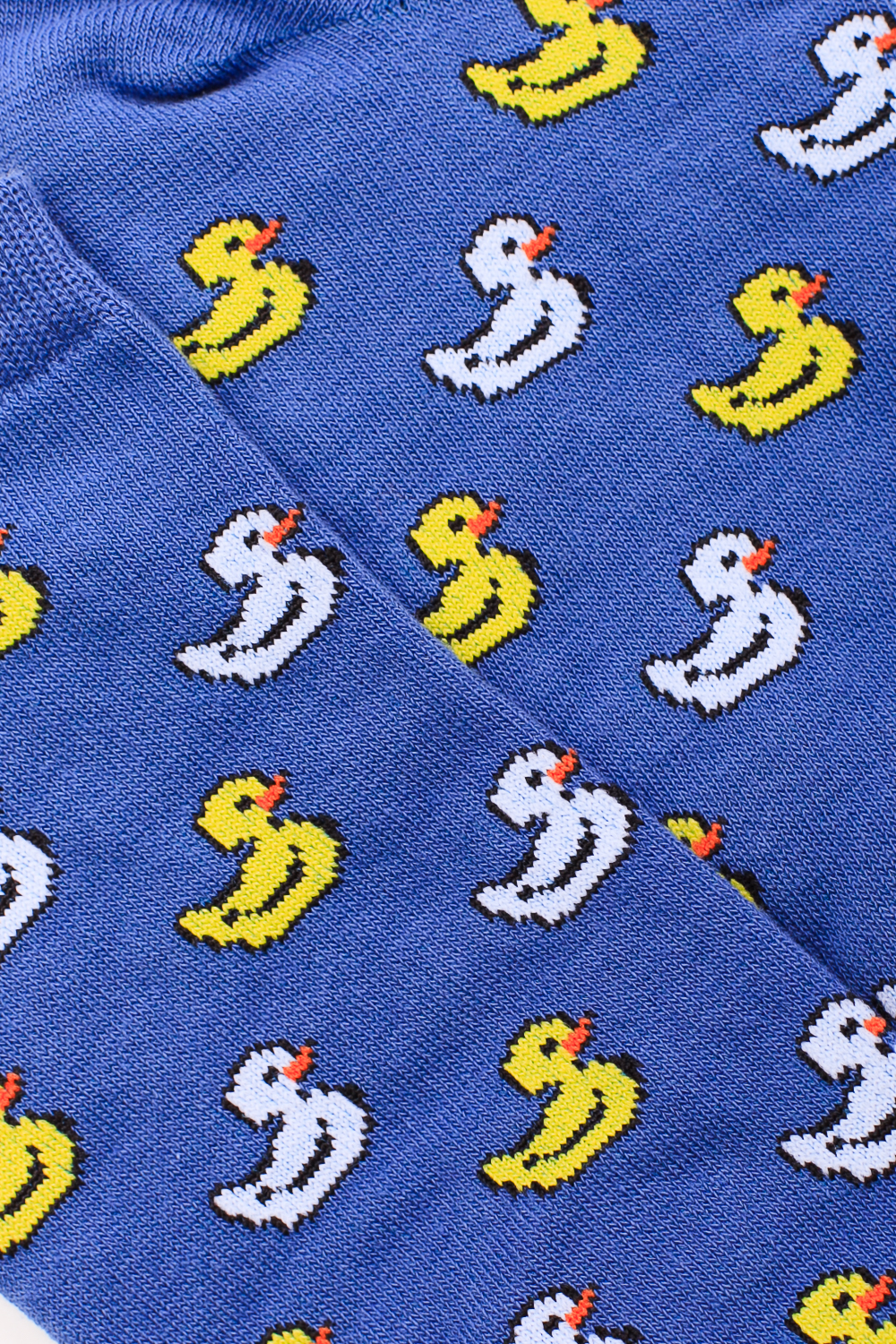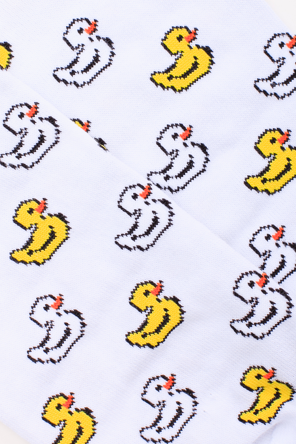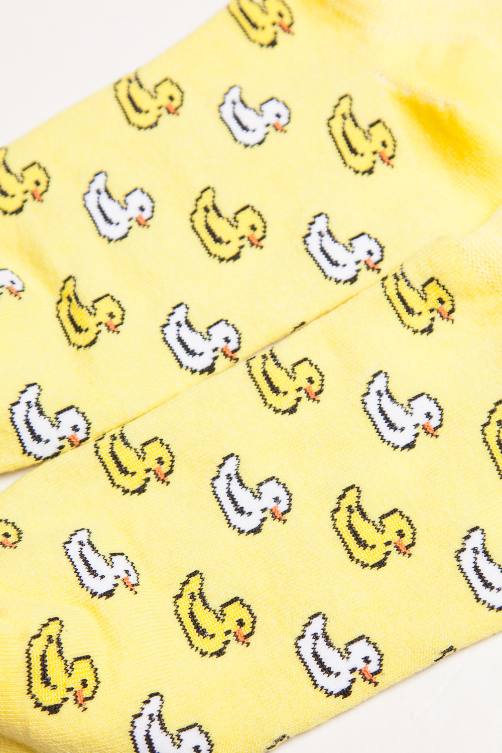 Носки от бренда Запорожец, выполненные из натуральной хлопковой ткани. Традиционная форма, короткая длина, укрепленный носок с пяткой и эластичная резинка в верхней части, обеспечивающая оптимальную фиксацию. Носки представлены в оригинальной расцветке, украшенной изображениями утят на всей поверхности.