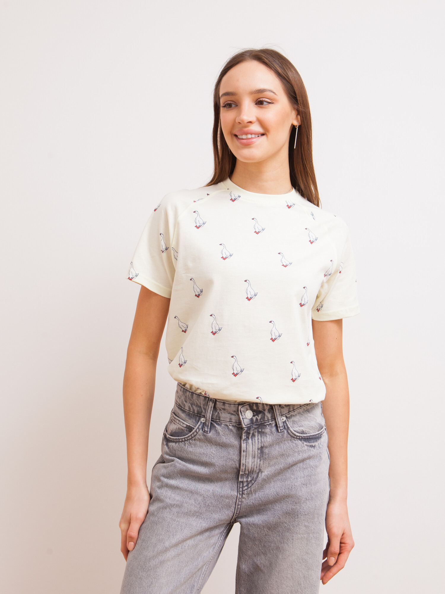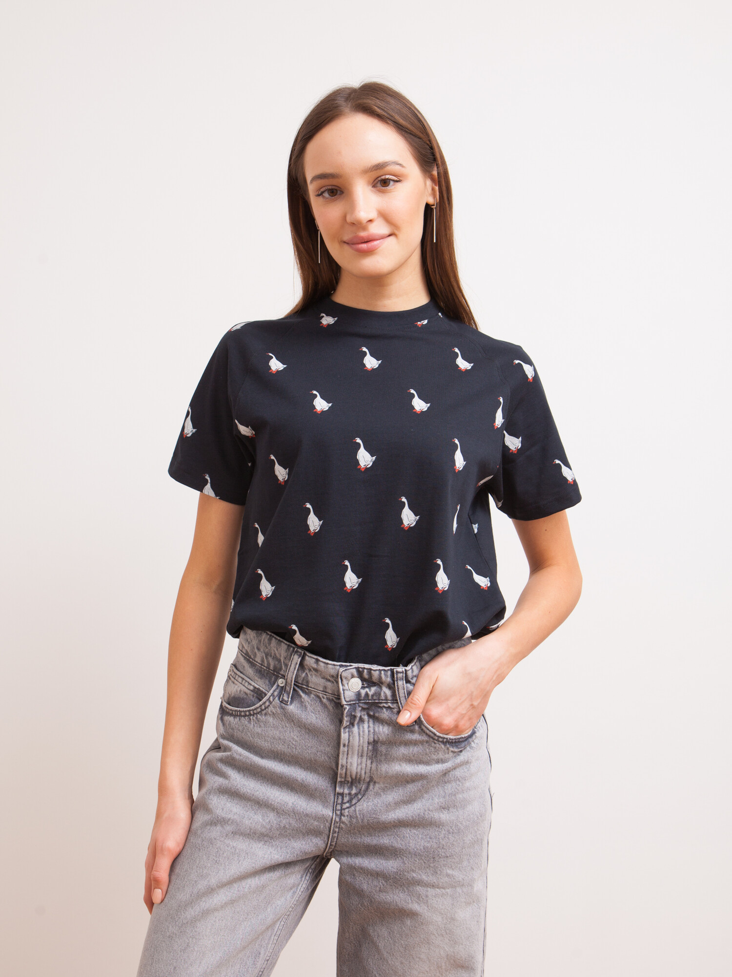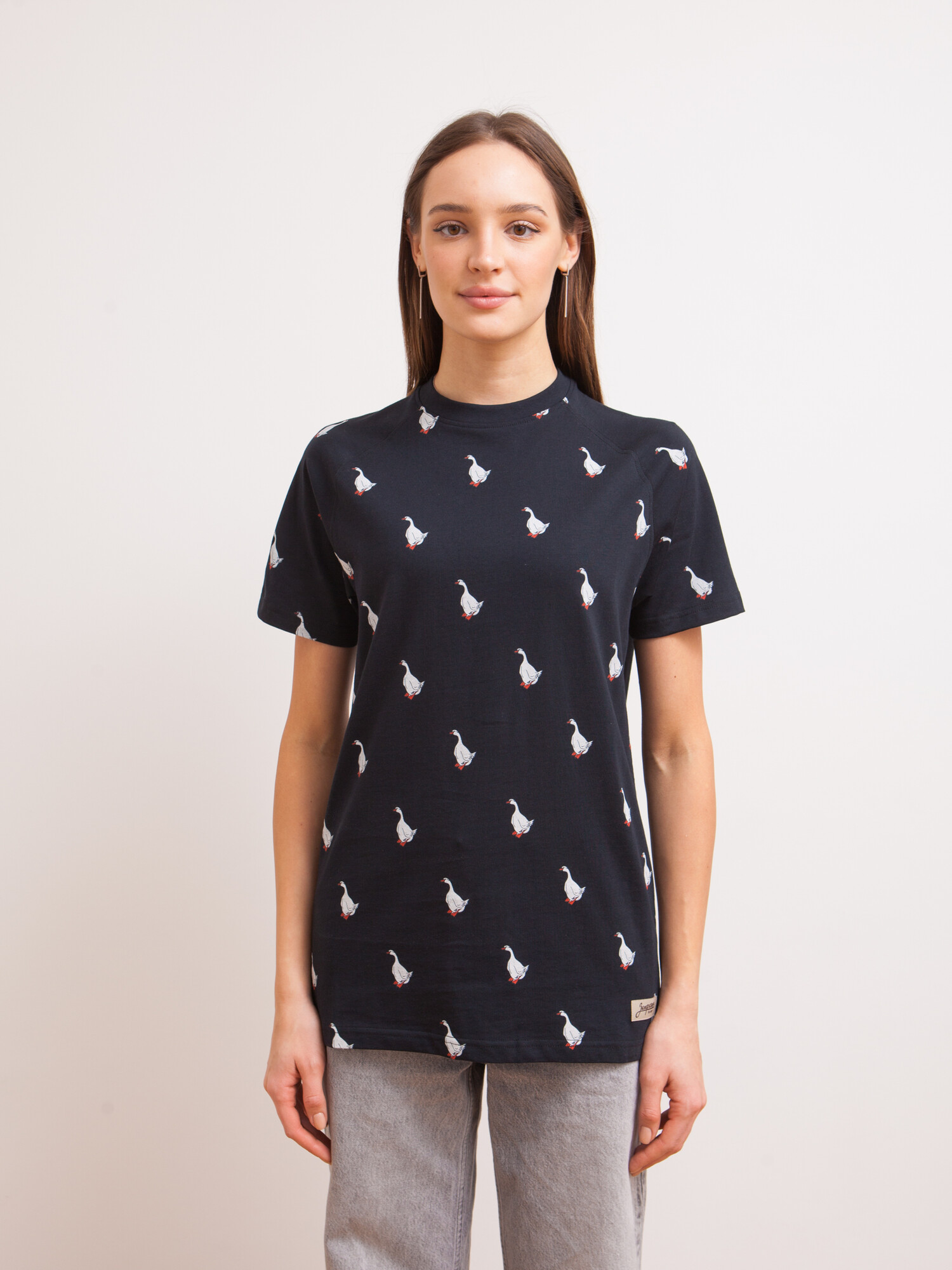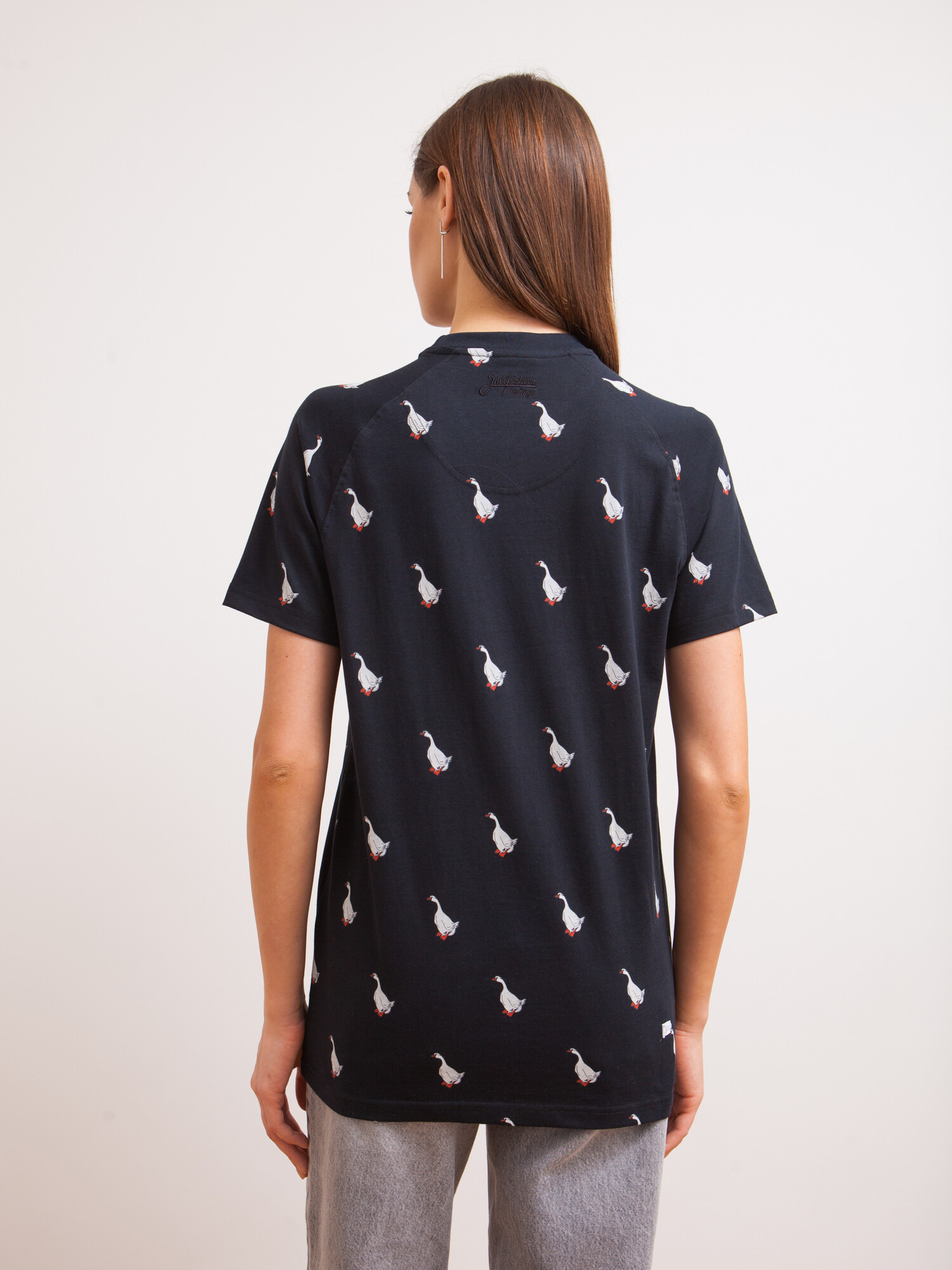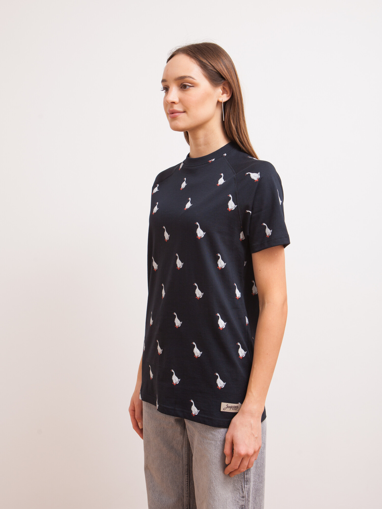 Футболка российского бренда Запорожец, выполненная из натуральной хлопковой ткани. В её основе лежит традиционный силуэт с прямым кроем и круглым воротом.