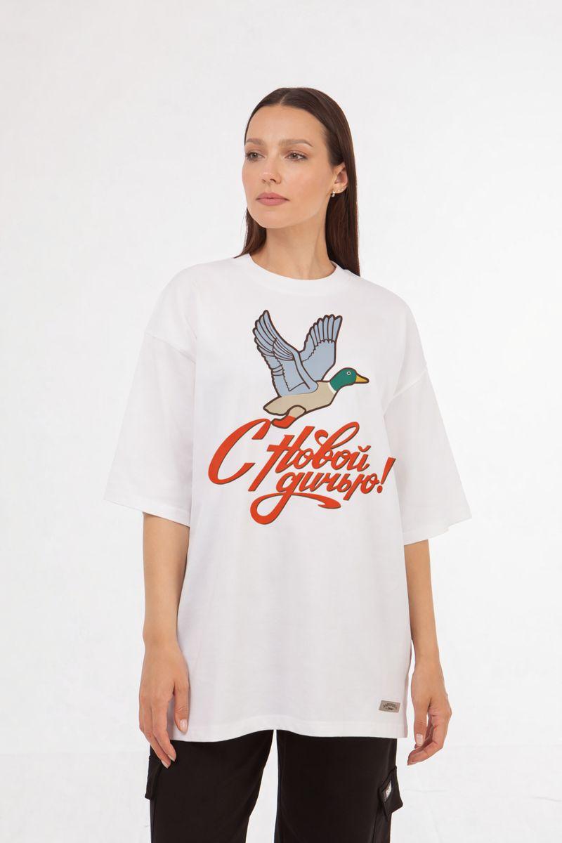 Трикотажная футболка прямого кроя и круглой горловиной.