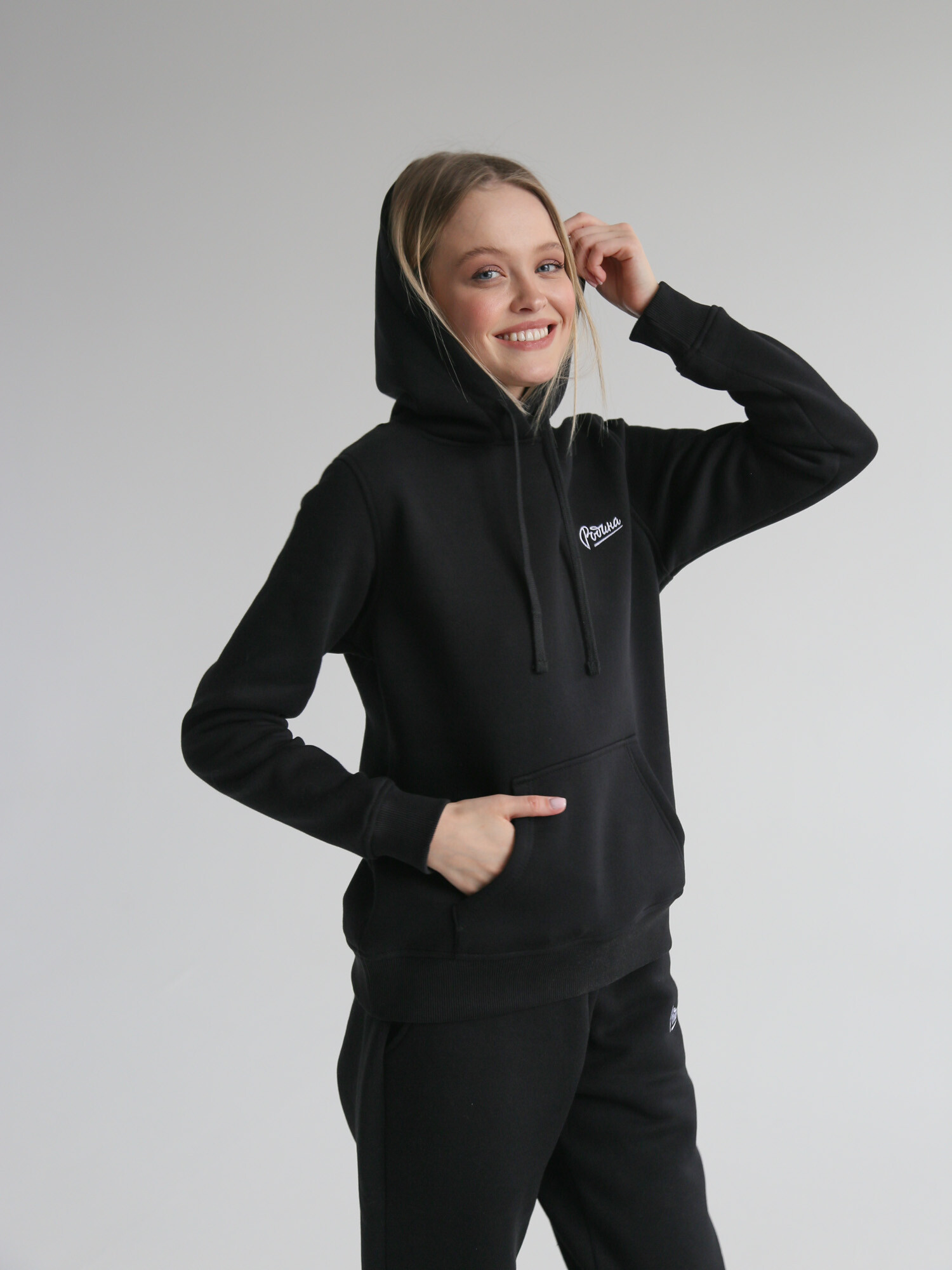 "Когда приходится спешить и нет времени долго подбирать образ – базовое худи Родина лучшее решение. Аккуратный крой, удобный капюшон, вместительный карман и минималистичная деталь в виде вышивки фирменного логотипа на груди не подведут вас в любой ситуации.