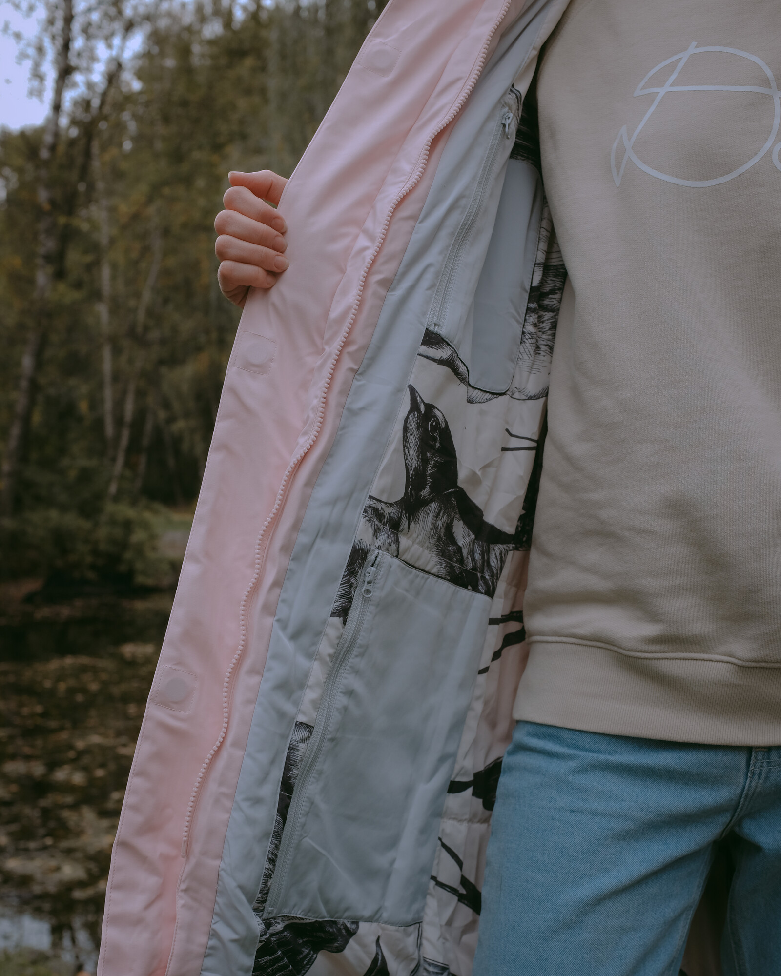 Глубокий капюшон дополнительно защищает от непогоды.
